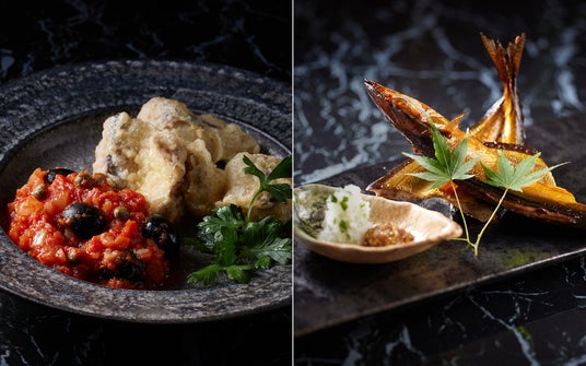 視察にて、宮城屈指というホヤの産地や、伊達いわななど、素晴らしい食材と郷土料理に出会うことで、今回の料理の数々に繋がり、各店舗でシェフが腕を振るいます。