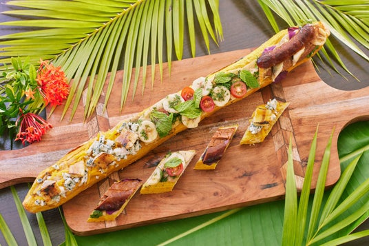 バナナは、その独特な食感と豊かな香りがチーズと非常によく合います。ミクロネシアで収穫された希少なマカウバナナと、バジル、ミントなどのハーブやブルーチーズ、島内で採取された華やかな味わいのハチミツを合わせた3種類のペアリングが楽しめる「ロングバナナバケット」を、カフェ ベイビューで提供します。このバゲットは50センチ以上あるため、数名でシェアすることができます。