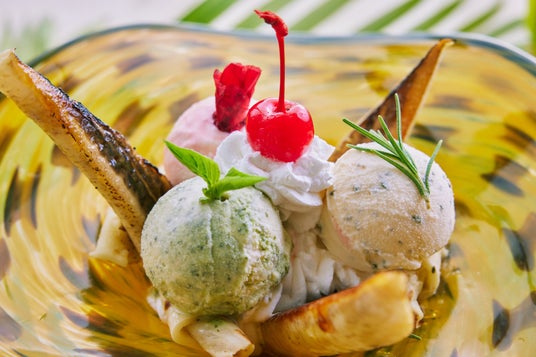 バナナスプリットは、バナナにアイスクリームを添えたアメリカの代表的なデザートです。カフェ ベイビューでは、3種類のハーブを使用したオリジナルのアイスクリームのバナナスプリットを提供します。たとえば、バナナの酸味とハーブの一種、ハイビスカスとの組み合わせはさっぱりとした味わいです。また、ローズマリーとの組み合わせではすっきりとした甘みを楽しむことができます。
