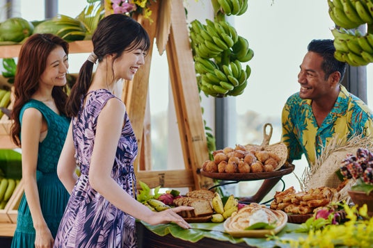 美しい海を見ながら朝食ブッフェが楽しめるレストラン「ル・プルミエ」では、日替わりのバナナ料理が楽しめる専用ブッフェコーナーを設置、バナナを使用したパンケーキやドーナツを日替わりで提供します。バナナの優しい甘みと食感を生かした、朝にぴったりのメニューが揃っています。