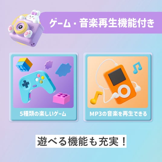 カメラなのにゲームで遊べます!お気に入りの音楽をSDカードに入れておけばカメラ本体で再生できます。