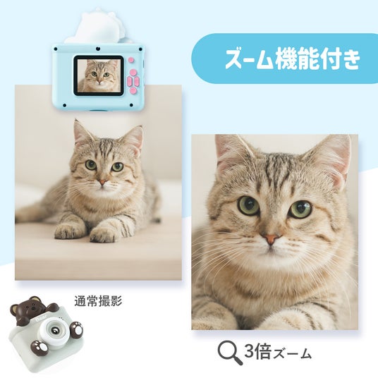 キュートな動物デザインと持ちやすいコンパクトなサイズ感、初めてでもわかりやすく、ワンタッチで撮影OK!簡単に操作できる使いやすさが魅力です。