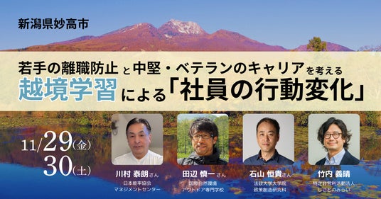 若手社員の早期離職防止や中堅・ベテラン社員のキャリア形成に課題を抱える企業や団体に向けて、普段の職場を離れて新しい環境で学ぶ「越境学習」に関するイベントを開催します。