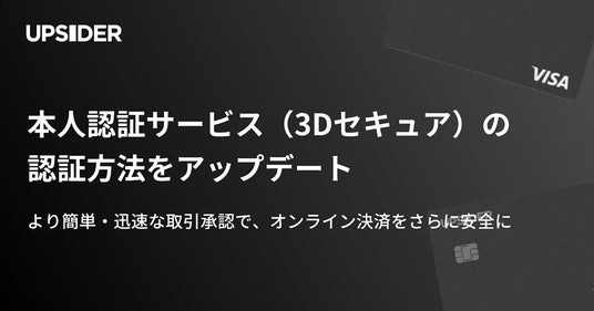 「挑戦者を支える世界的な金融プラットフォームを創る」をミッションとする株式会社UPSIDER(代表取締役:宮城徹・水野智規、本社:東京都港区、以下 当社)は、当社が提供する法人カード「UPSIDER」(以下 UPSIDER)の本人認証サービス(以下 3Dセキュア)の認証方法をアップデートしたことをお知らせいたします。本アップデートにより、カード保有者はオンライン取引の承認をこれまで以上に簡単・迅速に、かつ安全に行えるようになります。