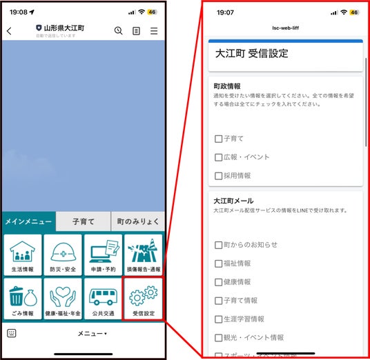 プレイネクストラボ株式会社では、大江町のLINE公式アカウントの開始にあたり、システムの提供と構築のサポートを行なっています。