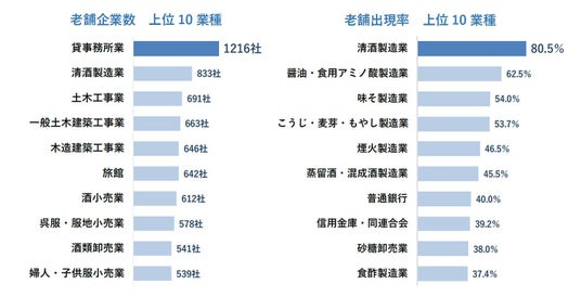 業種別、社数では建設・小売業、出現率では醸造系の業種が上位