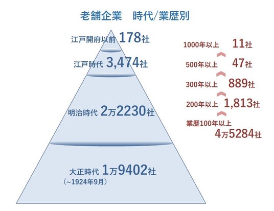 老舗企業は4万5284社 「業歴1000年企業」は11社に