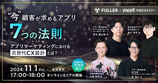 本セミナーでは、iPhoneの黎明期からアプリ開発に携わってきたフラー株式会社と株式会社ヤプリが、「今」の時代に求められるアプリについて、“7つの法則”を紹介しながらディスカッション。両社の強みであるデザイン設計から今求められる「アプリのCX設計」まで解説します。皆様のご参加をお待ちしています。