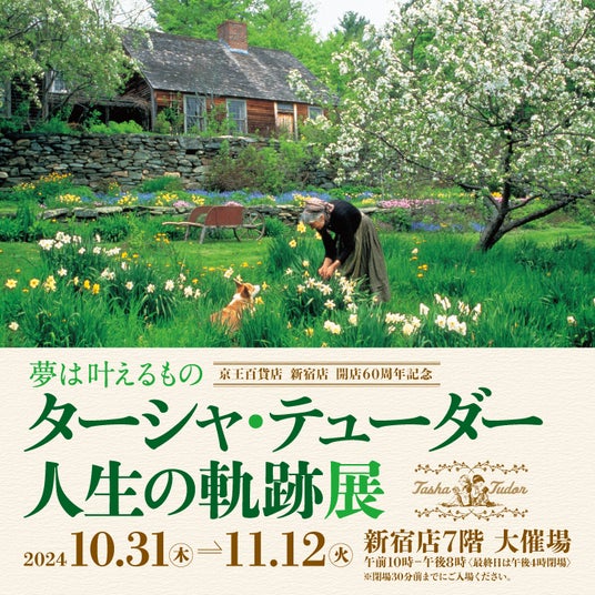 自分も楽しみ、人も楽しませたターシャの人生の軌跡をたどる展覧会、「夢は叶えるもの ターシャ・テューダー 人生の軌跡展」が、2024年10月31日(木)~11月12日(火)まで京王百貨店新宿店にて開催されます。