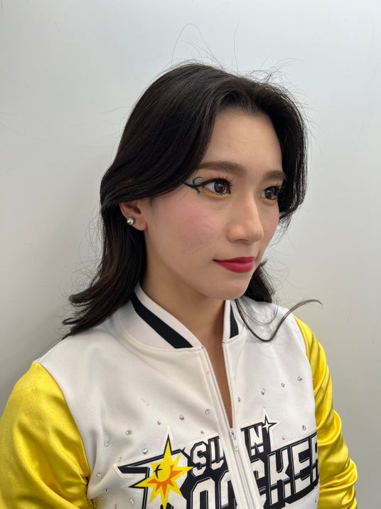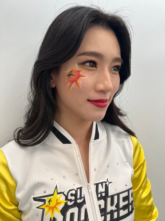ファンの皆さんにとって、より応援が楽しくなるようにサンロッカーズロゴの太陽をモチーフとしたインパクトのあるメイクに仕上げています。アイラインもサンロッカーズのSを印象的に力強くデザインし、チームに勢いをつける応援メイクのポイントとして考案しています。