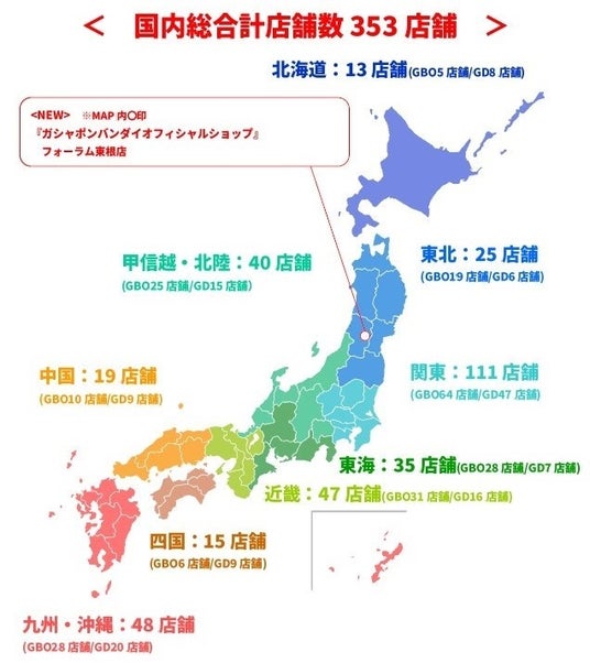 株式会社バンダイナムコアミューズメントは、株式会社バンダイのカプセルトイブランド「ガシャポン」の専門店『ガシャポンバンダイオフィシャルショップ』フォーラム東根店を、2024年11月1日(金)、映画館「フォーラム東根」(山形県東根市)内にオープンします。