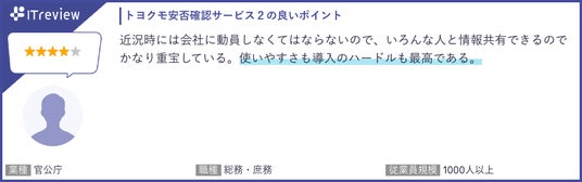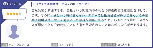 「情報サービスをとおして、世界の豊かな社会生活の実現に貢献する」を理念に掲げ、ビジネス向けのクラウドサービスを提供するトヨクモ株式会社(本社:東京都品川区 代表取締役社長:山本裕次、以下トヨクモ)は、国内最大級のIT製品・SaaSレビューサイト「ITreview」が発表する 「ITreview Grid Award 2024 Fall 安否確認システム部門」 において、法人向けの安否確認システム「安否確認サービス2」が18期連続で最高評価の「Leader」を受賞したことをお知らせします。