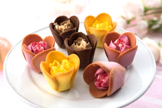 累計販売5000万個を突破した代表作。繊細なラングドシャクッキー細工のチューリップの中に、とろけるショコラクリームのローズを咲かせました。甘酸っぱい「ベリー」、深みある「キャラメルナッツ」、爽やかな「パッションマンゴー」の3種のセット。一輪ごとに贅沢な美味しさが口いっぱいに広がる一品です。