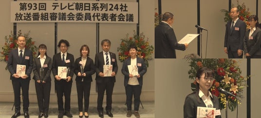24日に行われた表彰式で、テレビ朝日の放送番組審議会の見城徹委員長から、佐藤まゆみディレクター、藤井尚弘プロデューサーに表彰状とトロフィー、目録が贈られました。表彰式の中で佐藤ディレクターは「誉さんと家族の日常を通して、生きることの尊さ、命の大切さが多くの人に届くことを願っています」と語りました。