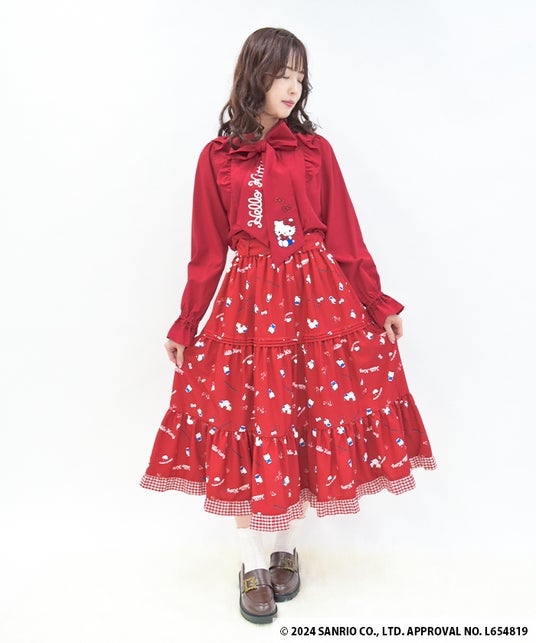 ハローキティ刺繍ブラウス・ハローキティプリントスカートと合わせたトータルコーディネートがお