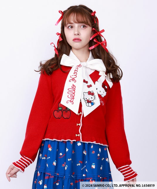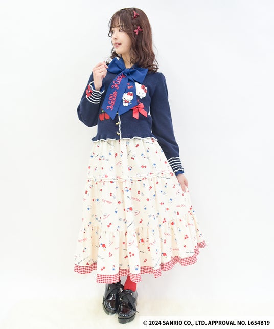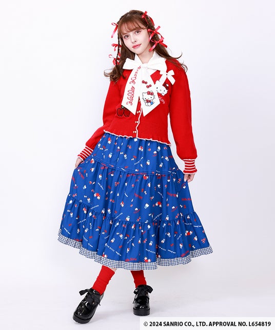 ハローキティプリントスカート・ハローキティカーディガンと合わせたトータルコーディネートがお
