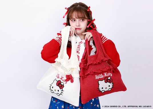 キュートなハローキティ フェイスをジャカードニットでバッグにしました。
