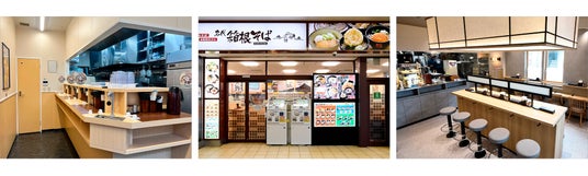 左:箱根そば 千歳船橋店、中:箱根そば 海老名店、右:箱根そば 狛江店
