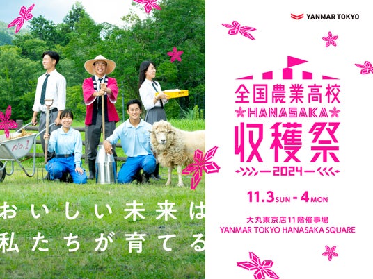 ヤンマーホールディングス株式会社は、「2024年全国農業高校HANASAKA収穫祭」を、2024年11月3日(日)と4日(月・祝)の2日間、大丸東京店および「YANMAR TOKYO(所在地:東京都中央区)」の地下1階イベントスペース「HANASAKA SQUARE」にて開催します。2023年より協賛し、今回で2回目の開催となります。
