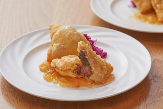 バターでソテーした王秋梨をイタリア料理のサルティンボッカをイメージし、生ハム、セージ、ゴルゴンゾーラチーズで一緒に巻き、更にパイ生地で包んだ創作イタリアンです。