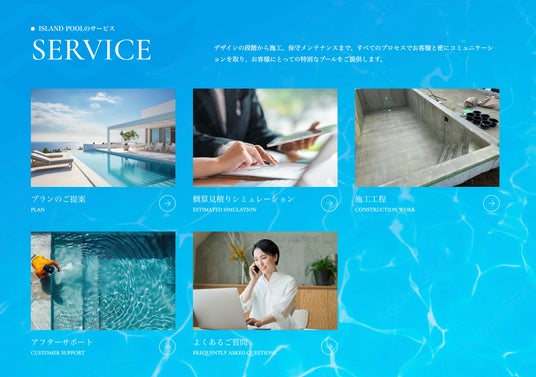 ISLAND POOLでは、日本ではあまり馴染みのないコンクリートプールの設計、施工、保守において高い技術力と品質を提供しています。