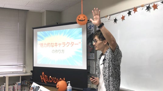 授業前半では、作品作りに重要となる『魅力的なキャラクター作り』についての講義を実施。