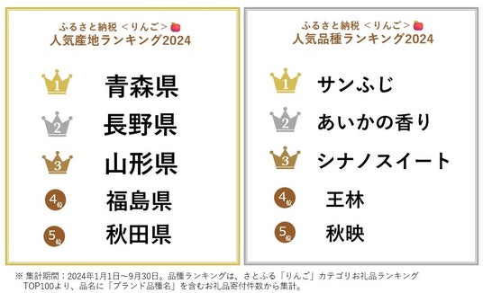 ※ 2024年1月1日~9月30日までの「さとふる」における「りんご」カテゴリお礼品への寄付件数より算出。一部受付期間外・取り扱い終了のお礼品があります。