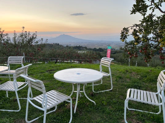 岩木山と津軽平野を見渡せる高台にある、黒石観光りんご園です。雄大な自然の中で食べるもぎたてのりんごは格別です。つがる・北斗・シナノスイート・トキ・ジョナゴールドなど、来園時期によってさまざまな品種を楽しめます。