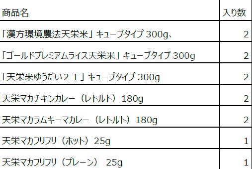 対象商品:全商品(「漢方環境農法天栄米」 キューブタイプ300g、「ゴールドプレミアムライス天栄米」 キューブタイプ300g、「天栄米ゆうだい21」 キューブタイプ300g 、「天栄米3種セット」 キューブタイプ300g ×3)