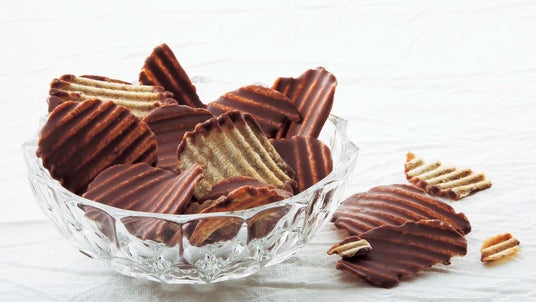 ポテトチップとチョコレート、意外な組み合わせから生まれた大ヒットのおいしさ。 パリッとした軽快な食感のポテトチップの片面に、口どけの良いチョコレートをコーティングしました。 チョコレートの甘さとポテトチップの塩味の絶妙なバランスがクセになるおいしさです。
