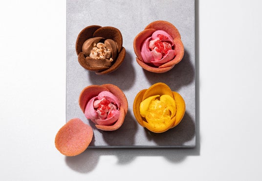 累計販売5000万個を突破した代表作。繊細なラングドシャクッキー細工のチューリップの中に、とろけるショコラクリームのローズを咲かせました。甘酸っぱい「ベリー」、深みある「キャラメルナッツ」、爽やかな「パッションマンゴー」の3味のセット。一輪ごとに贅沢な美味しさが口いっぱいに広がる一品です。