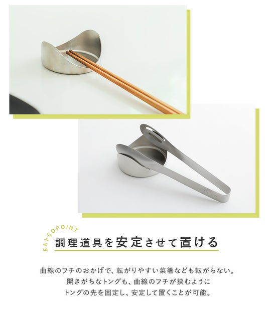 囲いが付いた形状なので、スープなどをすくった後のおたまを置いても汁などがこぼれにくいデザインです。食材の色や匂いが移りにくく、錆びにくい丈夫なステンレス製。食器洗い機・食器乾燥機も使用可能です。