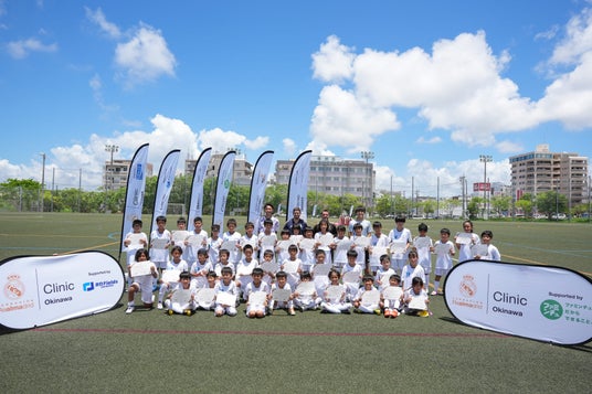 本年は、株式会社沖縄ファミリーマート(本社:沖縄県那覇市、代表取締役社長 糸数 剛一)、一般財団法人沖縄観光コンベンションビューロー(会長 下地 芳郎)に全面協力いただき、那覇市からの後援のもと、沖縄県で初めての開催に至りました。クリニック当日は85名の生徒に参加いただき、レアル・マドリードのリザーブチームでの指導経験とUEFA公認の指導ライセンスを持つコーチが直接指導を行いました。今後も沖縄の若い世代の皆様に対して、「世界を感じ」「世界に羽ばたくキッカケ」を与えられるような機会を提供するとともに、様々な魅力的なコンテンツを発信し「地域躍動」に少しでも貢献してまいります。