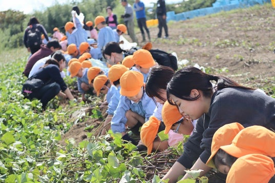 NSGグループの国際こども・福祉カレッジの学生は10月9日と10日の2日間、NSGグループ企業である株式会社ベジ・アビオの圃場で、藤見幼稚園のこどもたちと一緒に芋掘り体験をおこないました。この特別授業では、自然とのふれあいを深めることを目的とし、学生とこどもたちが一緒に楽しく学びました。