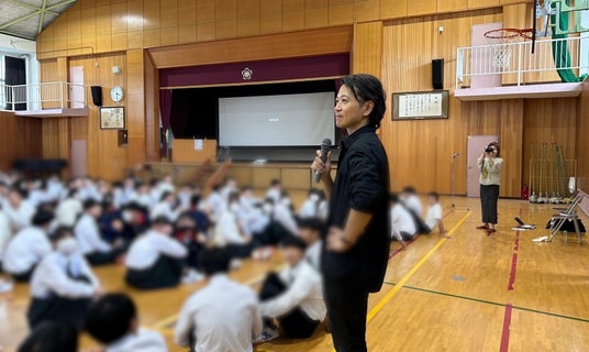 寄贈先の学校に訪問し、記念講演を実施。「人生の長い時間を占める“仕事”について考えてみよう」をテーマに、『レベルゼロ』の内容に沿って展開しました。質疑応答の時間では「これまでで挫折した経験はありますか?」「どうして起業しようと思いましたか?」など、講演時間を延長するほど多くの質問が飛び交いました。書籍に興味を持ってもらうきっかけとなり、読書推進にも貢献できる機会となりました。