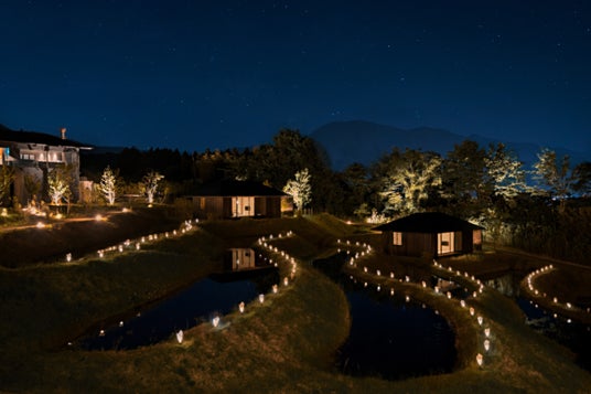 界 由布院が位置する由布院温泉は、大分県の中でも特に標高が高く冷え込みが厳しい地域です。昼夜の寒暖差が大きいこの地域は、かつては棚田が広がっており昔から稲作農業が盛んでした。施設内に広がる棚田の稲は秋に収穫を迎え、稲が刈り取られた農閑期の田圃では冬期湛水(とうきたんすい)を行い来季に向けて静かに栄養を蓄えます。農作業を行わない冬の田圃に温かい灯りが立ち並ぶ幻想的な空間で、大切な人と「やつがい」の時間を共にしながら、心も身体もほっと温まるひとときを過ごしてもらいたいという思いから当アクティビティを考案しました。
