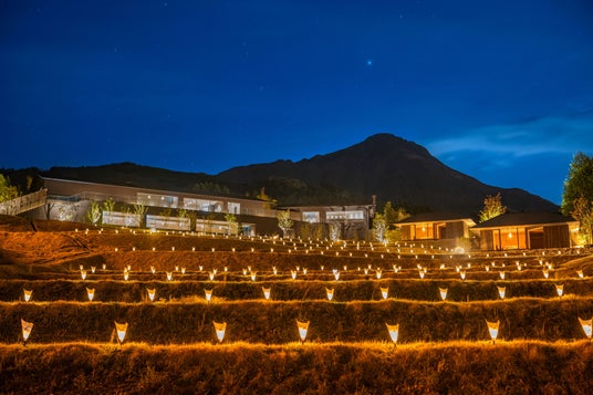 四季折々の棚田を感じる湯宿「界 由布院」では、昨年に引き続き、2024年12月1日~2025年2月28日の期間、お酒を堪能しながらライトアップされた冬の棚田を眺める「冬灯りやつがい」を開催します。「やつがい」とは大分県の方言で晩酌を意味し、2年目となる今年はホットワインを嗜みながら、冬季ならではの景色を眺めることができます。冬の棚田暦(たなだごよみ)(*1)をより身近に感じるひとときを楽しめるアクティビティです。