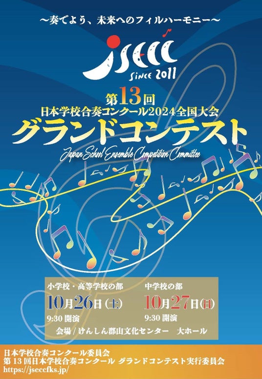 NSGグループのFSGカレッジリーグ:国際アート&デザイン大学校(A&D)グラフィックデザイン科1年生の橋本凪冴さんのデザインが、第13回日本学校合奏コンクール全国大会グランドコンテストの大会パンフレット・チケットのデザインとして採用されました。