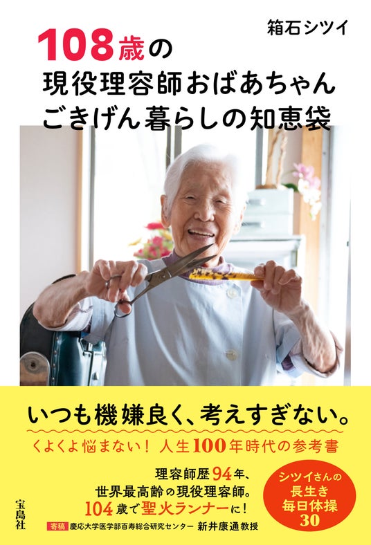 株式会社宝島社(本社:東京都千代田区、代表取締役社長:関川誠)は、2023年、世界最高齢の現役理容師に認定された箱石シツイさん初の著書『108歳の現役理容師おばあちゃん ごきげん暮らしの知恵袋』を、2024年11月11日(月)に発売します。