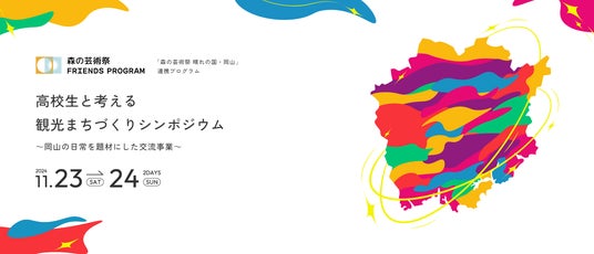 株式会社日本旅行、西日本旅客鉄道株式会社、岡山県、岡山県観光連盟にて構成される岡山県地域課題解決型教育旅行誘客プロジェクト実行委員会は、2024年11月23日~24日の2日間、<森の芸術祭 晴れの国・岡山 連携プログラム>「高校生と考える観光まちづくりシンポジウム ~岡山の日常を題材にした交流事業~」を開催します。森の芸術祭 晴れの国・岡山の開催にあわせて、岡山県の高校生が、地元の魅力を発信する教育旅行受け入れプログラムを開発しました。本シンポジウムは、そのプログラムを全国の高校生および岡山県の観光事業者に紹介する場です。