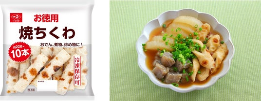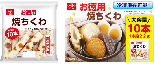 また、「焼ちくわ10本」は多くのお客さまにご好評いただいているお徳用シリーズに新たに加わった商品です。お徳用シリーズには、「小判てんぷら」や「小判てんぷら 野菜」などの大容量の揚物商品がラインナップされており、いずれも冷凍保存が可能で、コスパ・タイパに優れた商品です。