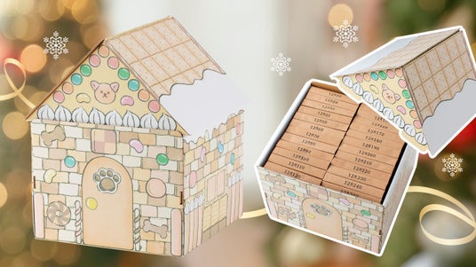 お菓子の家の中には、素材や製法にこだわったわんちゃん用の安心なおやつ「はなまるおやつ」の食べきりサイズ8種類が、25日分ランダムに入っています。8種類のうち3種類は、クリスマス限定商品です。