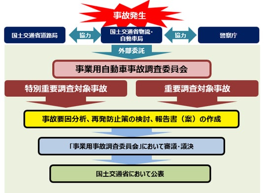 平成26年(2014年)6月、 「交通事故総合分析センター」を事務局として、各分野の専門家から構成される「事業用自動車事故調査委員会」を設置し、事業用自動車の重大事故について事故要因の調査分析を行っている。