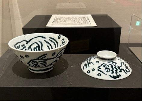 本展覧会は6つの章で構成されており、最後の章「キース・ヘリングと日本」では、ヘリングが1988年にオープンした、ポップショップ東京で販売された茶碗を当館から出品しています。