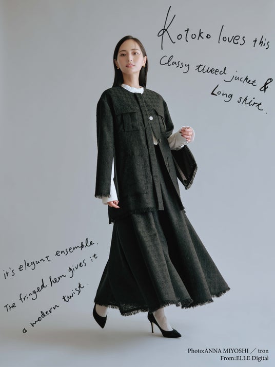Item:Jacket ¥110,000、Skirt ¥77,000、Shirt ¥47,300