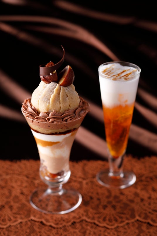 パンナコッタ、バニラアイスクリームなど、栗と相性のいい食材を組み合わせ、ひと匙ごとにときめきを感じる味わいに仕立てました。キャラメル風味のアイスティーと一緒に、大人プリンセス気分で