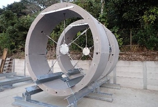 鉄建建設とIHI建材工業では、今後の展開を見据えて各種の耐久性試験を実施しており、セグメントモックアップ(外径Φ3,100mm)を鉄建建設の建設技術総合センターに設置し、自然環境下での性能試験と長期耐久試験を行っています。
