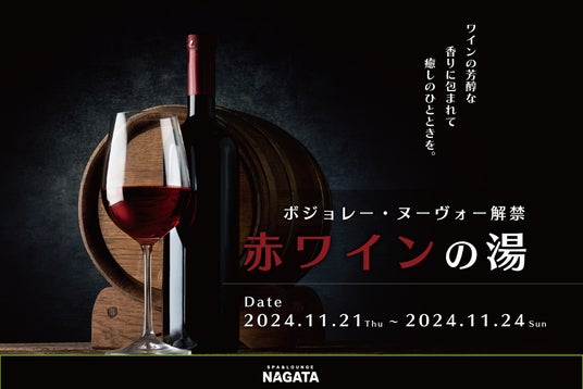 スパ&ラウンジ長潟では、11月21日(木)のボジョレー・ヌーヴォー解禁日を記念し、ワイン風呂を4日間限定でご用意いたします。この特別なワイン風呂は、心身を温めながらリラックスできる贅沢なひとときを体験いただけます。芳醇な香りに包まれ、肌にうるおいを与えるワインのエッセンスが楽しめるこの機会を、ぜひお見逃しなく!ワイン好きの方も、初めての方も、極上のリラクゼーションをお楽しみください。