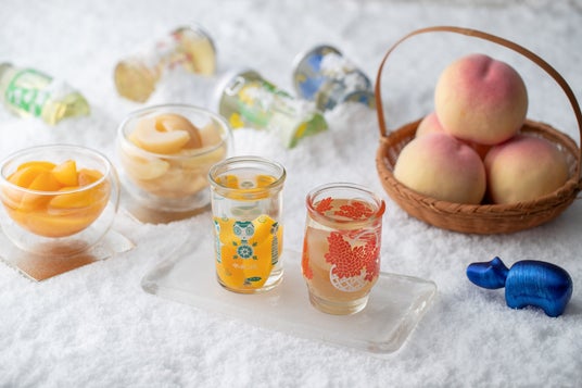 雪で冷やした半シャーベット状態のみぞれ酒に、冷凍した桃を入れ、キンキンの冷酒を楽しめます。冬の雪原の中、あえて冷酒を楽しむ贅沢な時間を過ごせます。