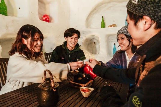 磐梯山(ばんだいさん)の麓に位置するリゾートホテル「星野リゾート 磐梯山温泉ホテル」に、2025年1月30日~2月28日の間、雪原に佇む酒場「雪ん中(ゆきんなか)酒場」がオープンします。雪ん中酒場は、ホテル目の前のゲレンデに位置する雪で作られた酒場です。雪で作られた灯籠やライトアップされた酒瓶の明かりを眺めながら、酒処会津のお酒やおつまみを堪能できます。中でもおすすめなのが、会津の個性豊かなカップ酒です。カップ酒は、雪で冷やし冷凍桃を加えたみぞれ酒と、干物を入れた旨味たっぷりのお燗酒にアレンジして楽しめます。
